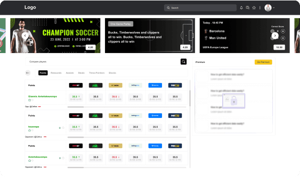 A community growth platform designed to foster meaningful connections and drive member participation. The platform includes notification systems, player and team detail pages, comparative analysis features, and promotional interfaces.